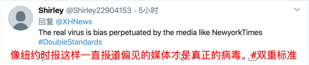 对于《纽约时报》“双标门”,新华社在其官方推特账号这样回应: