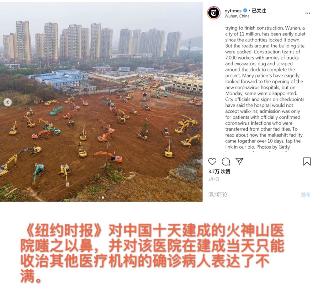 鲁网3月15日讯 日前,美国媒体《纽约时报》在其社交媒体官方账号上发布了一则关于中国防控疫情措施的报道,阴阳怪气地指责武汉封城的做法“让人民付出了生活和个人自由的巨大代价”。