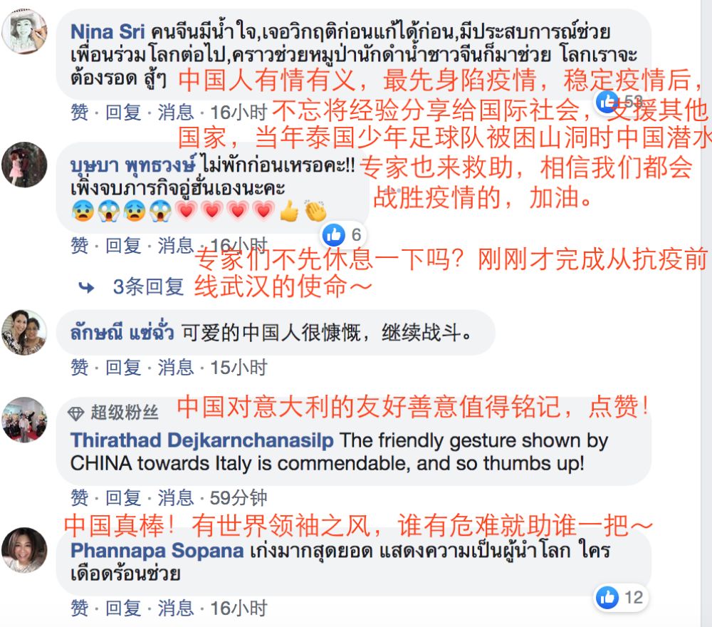 在新华社泰文脸书账号上,许多网友点赞中国的援助: