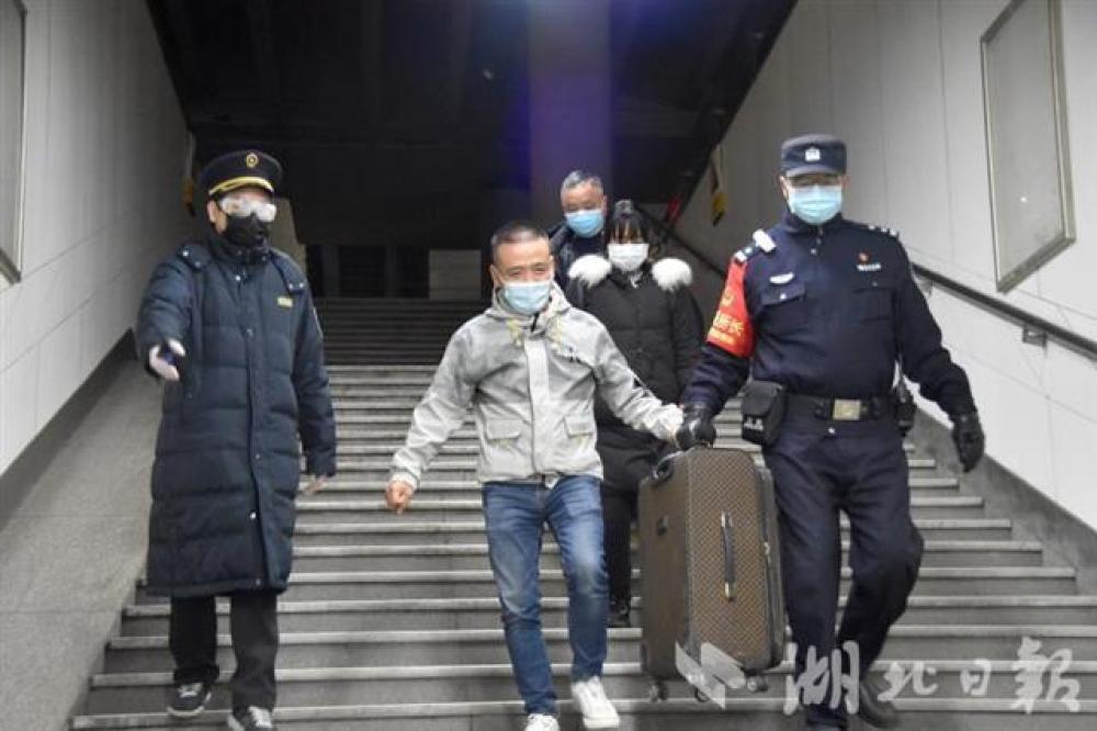 首趟列车上下来的3名旅客,都是返汉务工人员,他们也是武汉铁路客站恢复到达业务以来首批抵达武汉的旅客。