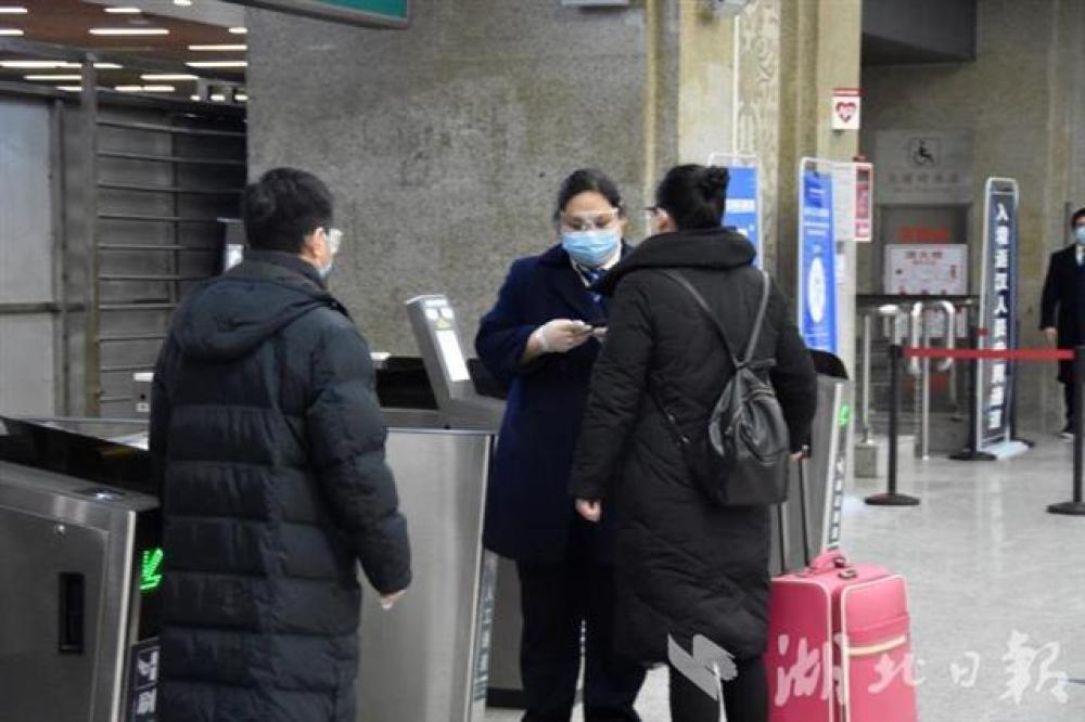 武昌火车站客运车间值班站长徐芳介绍,此前车站已全面进行消杀工作,当天途径及终到武昌站的载客列车约70列。根据防疫的要求,在出站口,工作人员将对到达旅客进行测温,提醒旅客佩戴口罩、排队出站时保持一定距离。