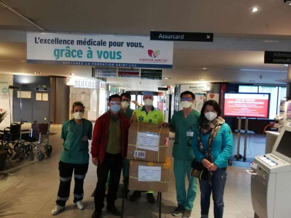 3月23日,在比华人将护目镜捐赠给比利时布鲁塞尔当地医院。(受访者供图)