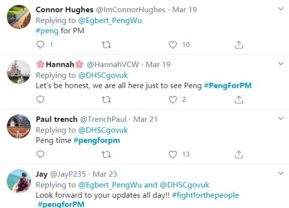 没想到,他第一次将制好的图表发布在英国卫生部推特账户下,就收获了当日最高关注和点赞量。