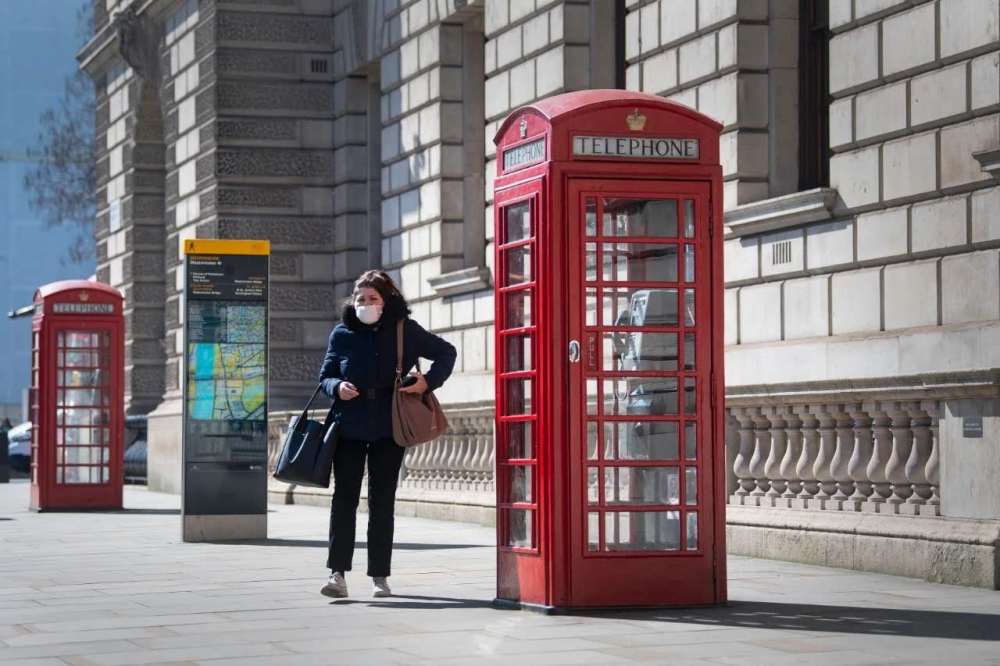 3月25日,在英国伦敦,一名女子戴口罩出行。新华社/美联