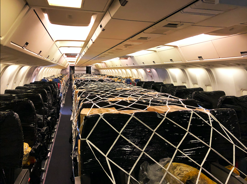 据悉,此次货运包机由俄罗斯伊可亚航空公司承运,运送的防疫物资主要为在中国采购的300万只口罩。此次航班使用客机执飞货运包机的形式,同时利用了客机腹舱和客舱空间装运物资。
