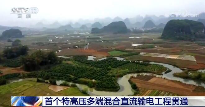 这项多端混合直流输电工程首次实现了一条±800千伏特高压直流线路,连接云南、广西、广东三端换流站,创造了多项输电领域的世界第一。