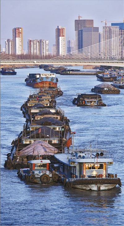 3月19日,江苏淮安市,京杭大运河上的货运船只运输繁忙。