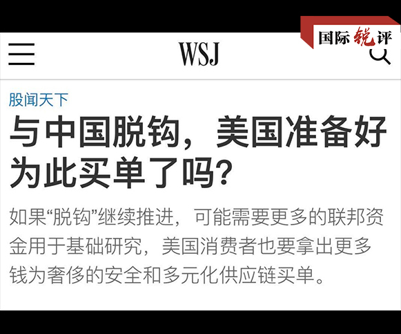“与中国‘脱钩’,美国准备好为此买单了吗?”3日,《华尔街日报》以此为题发出一个非常犀利的提问。文章警告说,美国安全方面的鹰派人士应当意识到,切断两国供应链和教育联系的广泛行动将对美国自身的竞争力造成重大损失。