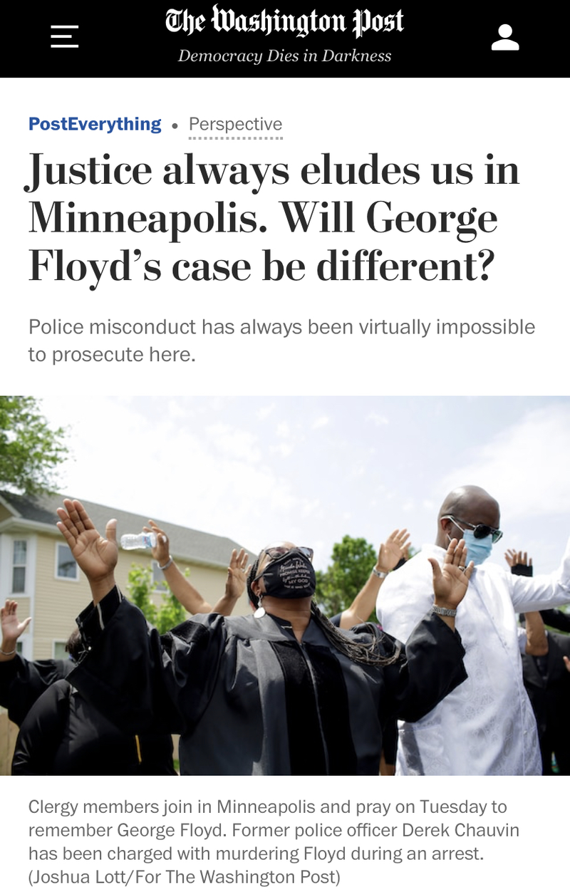 △《华盛顿邮报》报道,正义不能只是“白色”