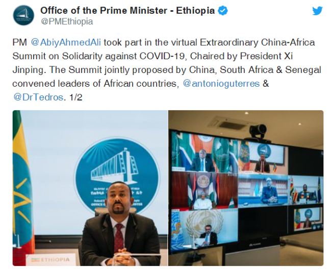 埃塞俄比亚总理阿比在峰会发言中表示:“在这前所未有的时期,团结一直是中国与非洲国家之间的关键所在。”阿比总理还强调说:“在我们努力克服大流行引起的健康和经济威胁时,建设我们现有的伙伴关系至关重要。”