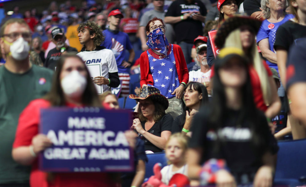 6月20日,特朗普的支持者参加在美国俄克拉何马州塔尔萨市举行的竞选集会。(新华社/路透)