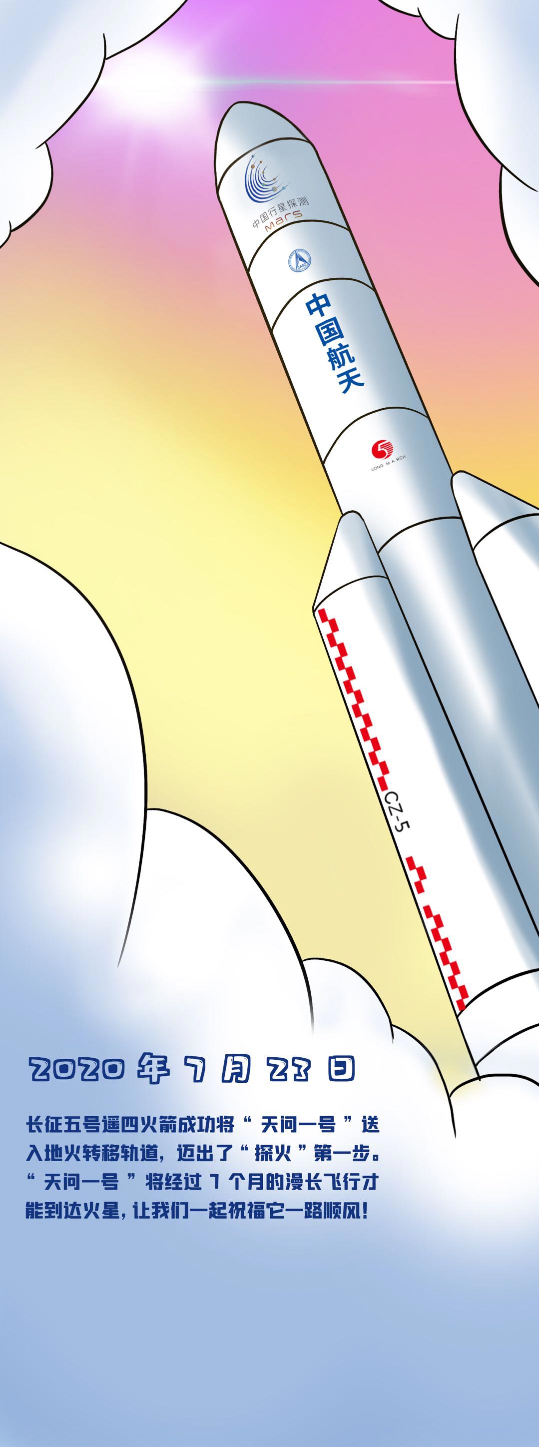 2020年7月23日,长征五号遥四火箭成功将天问一号送入地火转移轨道,开启了我国行星探测的序幕。