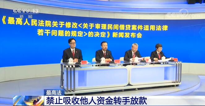央视网消息:昨天(8月20日)最高人民法院召开新闻发布会,发布新修订的《关于审理民间借贷案件适用法律若干问题的规定》。最高法有关负责人介绍,新规并未禁止正常的民间借贷,但严格禁止高利放贷。根据新规,民间个人借贷中,出借人的资金必须是属于其合法收入的自有货币资金,禁止吸收他人资金转手放款。