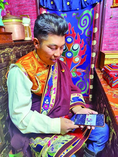 阿里地区改则县“圆梦新居”居民扎西顿珠展示其发布在短视频平台的影片。图片为本报记者刘宇航摄/光明图片