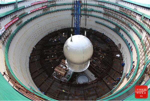 2016年4月22日,“华龙一号”首堆福清核电5号机组核岛三台安注箱吊装完成。(中核集团 供图)