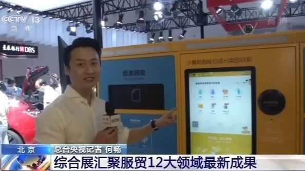 总台央视记者 何畅:此次综合展也是关注了当下全国正在流行的新时尚——垃圾分类。那像我们眼前这部智能垃圾分类回收机就是当下最新的机型,已经在全国39个城市进行了投放使用。在这上面进行手机注册就可以在这台机器上进行可回收物的分类投放。之所以让您手机注册是因为,成功分类后还有奖励。