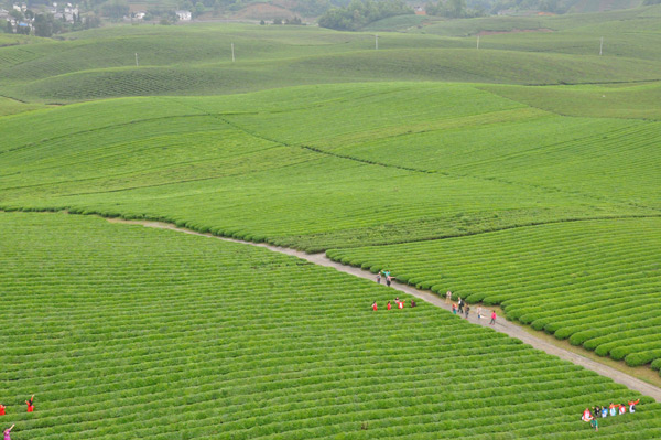 “中国名茶之乡”遵义市湄潭县开发了湄潭县国家现代农业产业园优质茶叶基地及茶旅一体示范园——翠芽27°景区茶海客厅和万亩茶海遵义红基地。湄潭有生态茶园60万亩,是贵州第一茶县,“湄潭翠芽”和“遵义红”这两件地理标志商标,均已注册10年。经过多年精心的运用、宣传、保护,茶叶成为当地茶农脱贫致富的“金叶子”。