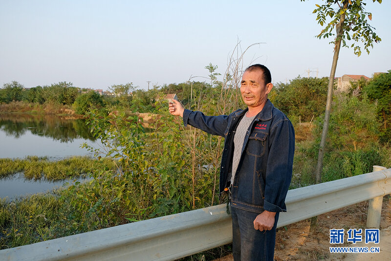 陈伦安在承包的鱼塘边。新华网李征峥 摄