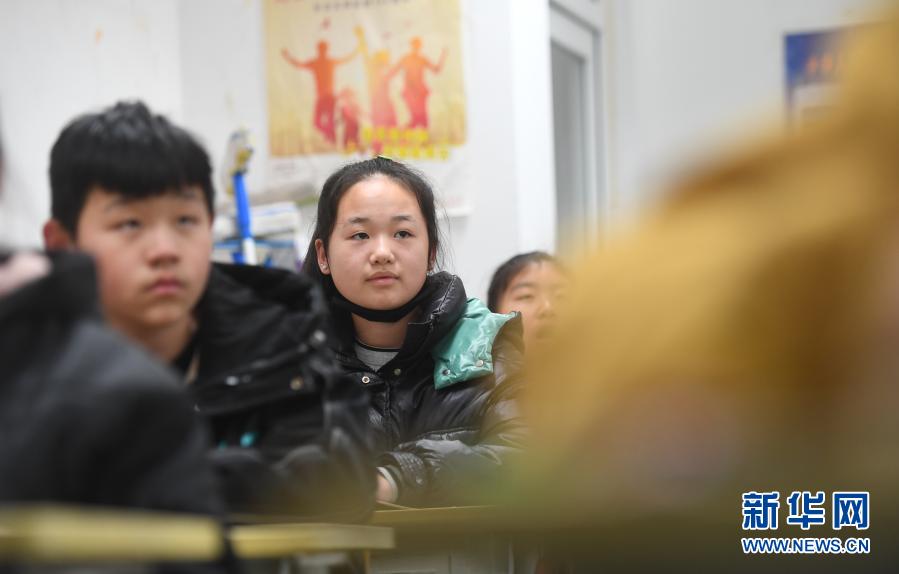 韩景芳(左二)在阜平县龙泉关学校教室上课(11月25日摄)。新华社记者 朱旭东 摄