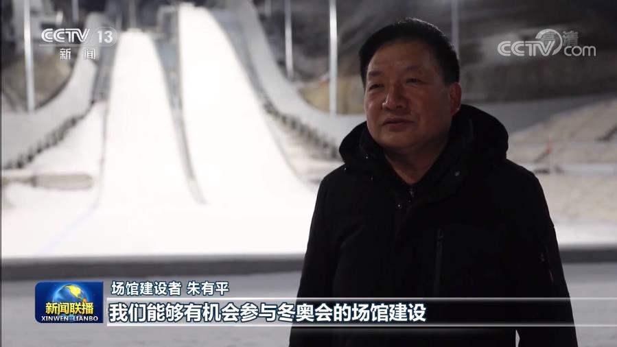 场馆建设者 朱有平:我们能够有机会参与冬奥会的场馆建设感到非常的光荣和自豪。我们一定要牢记总书记的嘱托,用实际行动把场馆建成世界上最好的场馆。