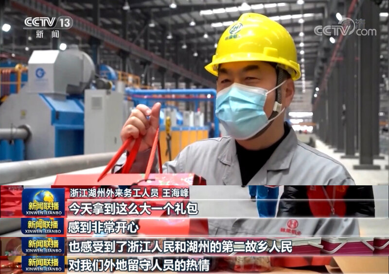 浙江外来务工人员较多。在湖州吴兴区,当地在线上开设了湖州剪纸、美食制作等课程,大家可通过手机进行观看;当地总工会还联合企业一起为外地员工送上酱鸭、八宝饭、坚果等充满年味的“大礼包”。