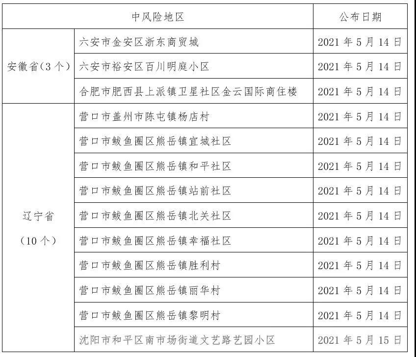 截至2021年5月16日9时,全国现有中风险地区13个。图片:封面新闻