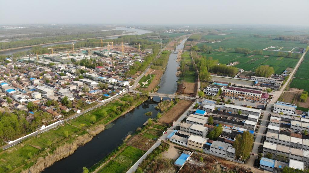 这是4月13日拍摄的沂蒙老区临沭县曹庄镇朱村(无人机照片)。新华社记者王凯摄