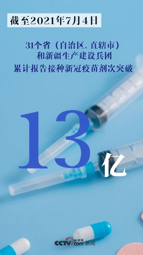 到7月4日,接种剂次超过13亿,用了6天。
