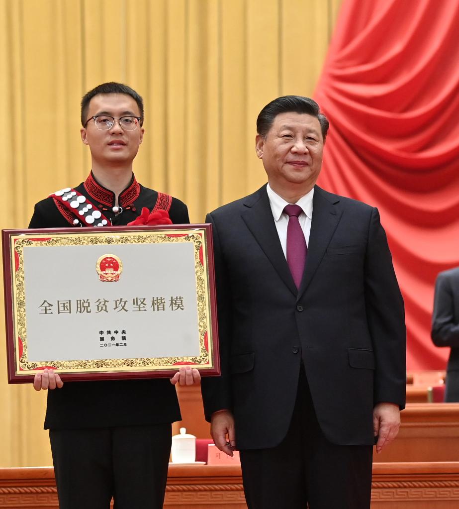 今年2月25日,在全国脱贫攻坚总结表彰大会上,有这样一幕动人的场景。