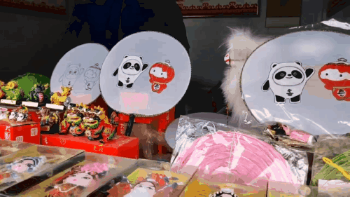 图为非遗体验区中绘有“冰墩墩”“雪容融”的团扇,游客可以亲手绘制一个“私藏版”的奥运吉祥物团扇。中工网记者 刘云摄
