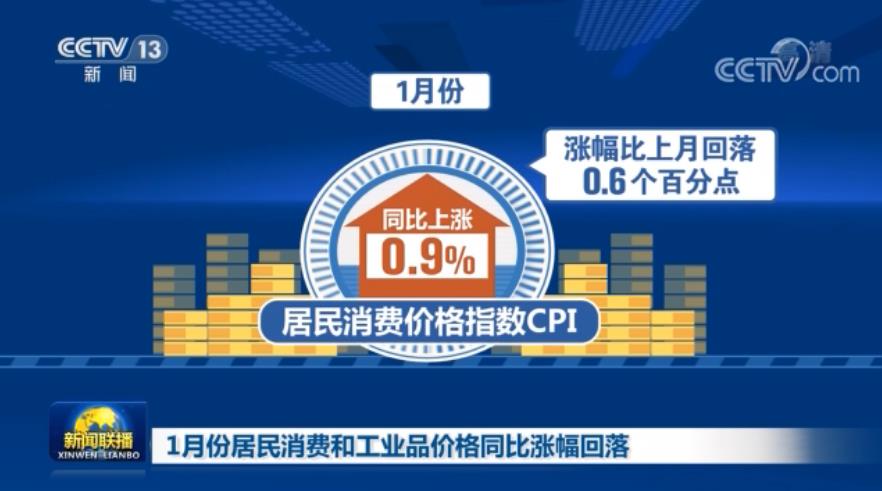 国家统计局今天(2月16日)发布数据显示,1月份,居民消费价格总体平稳,居民消费价格指数CPI同比上涨0.9%,涨幅比上月回落0.6个百分点。从环比看,受节日因素影响,鲜果、水产品和鲜菜价格上涨较为明显;非食品中,受国际能源价格上涨影响,汽油、柴油和液化石油气价格上涨。