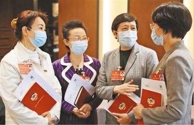 3月6日,社会福利和社会保障界的委员们在交流讨论。 本报记者 胡润新摄