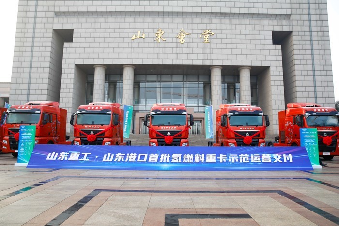 2022年1月,山东重工集团向山东港口集团交付首批中国重汽氢燃料重型牵引车,“氢进万家”科技示范工程再获新突破。此次交付的重型牵引车,不仅可以实现零排放,还可在5分钟内实现加满氢。