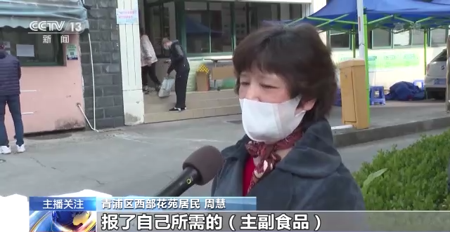 青浦区西部花苑居民 周慧:我们上午到居委会报了自己所需的(主副食品),下午流动车就到我们那个小区了,现在居委会就通知我过来(付款)领了。