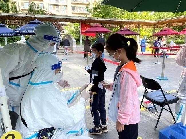 在石景山区西黄新村西里社区核酸采样点,青年志愿者杜虹欣引起了大家的注意。他是一名在校大学生,志愿加入到了社区的核酸检测队伍。他身边站着一位社工正在教他使用信息登记系统,这位社工正是他的妈妈杜琼华。
