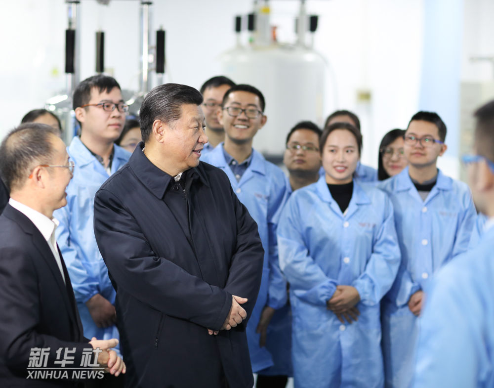 ↑2019年1月16日至18日,习近平在京津冀考察,主持召开京津冀协同发展座谈会并发表重要讲话。这是1月17日上午,习近平在天津南开大学元素有机化学国家重点实验室同师生亲切交流。