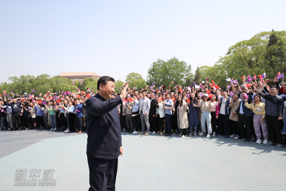 ↑2021年4月19日,在清华大学建校110周年校庆日即将来临之际,习近平来到清华大学考察。这是习近平离开学校时,同师生们挥手致意。