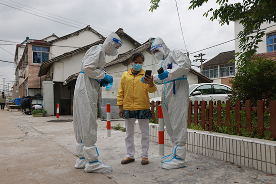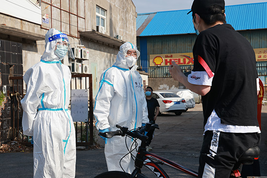 北蔡派出所社区民警张文虎今年8月即将退休,但当他知道所里需要抽调警力增援一线后,第一时间找到所领导主动请战。“我是社区民警,做了这么多年,如何有效与居民沟通我更熟悉。”就这样,他和其他17名民警组成抗疫先锋队,穿着密实的防护服,逆行入驻北蔡地区的9个行政村,奋战在战疫的最前沿。
