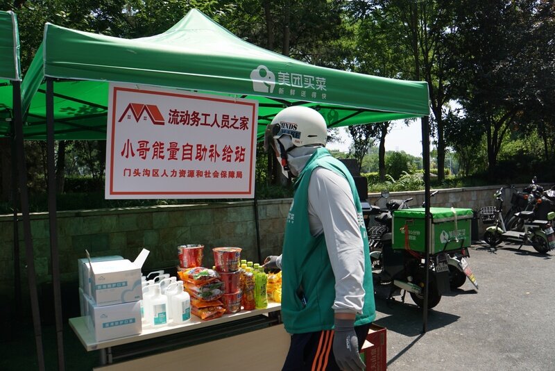 5月20日,门头沟区人力社保局首创推出“流动务工人员之家”服务模式,将在疫情暂停餐饮堂食期间,分别在商超卖场、餐饮商区设置“小哥能量加油站”,在快递、外卖站点设置“小哥能量自助补给站”,为外卖骑手、快递小哥等新业态劳动者提供补给、防疫物资、政策咨询等服务。截至目前,累计服务1000余人次,发放矿泉水、N95口罩等物资2600余份。