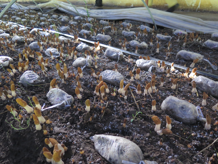 图为2020年7月在青海省果洛藏族自治州班玛县采青滩拍摄的试种成功的羊肚菌。(受访者供图)