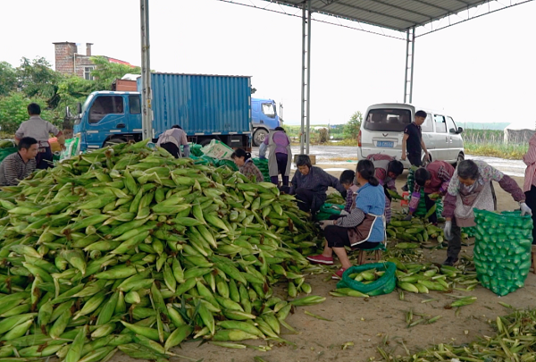 广西北海市玉米迎来丰收季,村民们忙中带乐。受访者供图