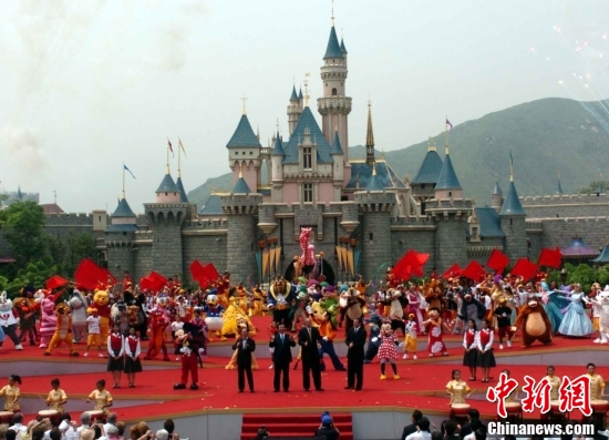 2005年9月12日,香港迪士尼乐园开幕庆典在睡公主城堡外举行。中新社记者 赵振清 摄