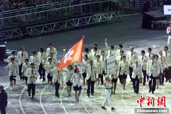 2000年9月15日,中国香港奥运代表团步入悉尼奥运会开幕式。中新社发 李刚 摄