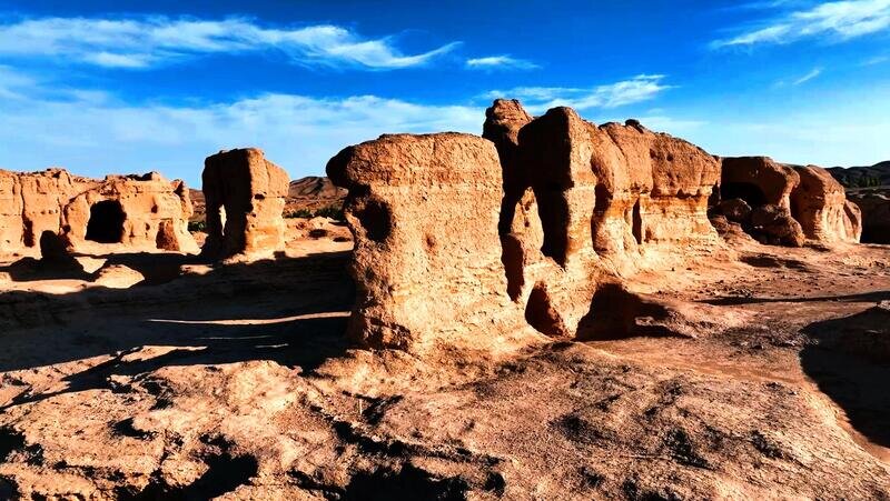 △交河故城形制多样的建筑遗存。(总台央视记者马超拍摄)