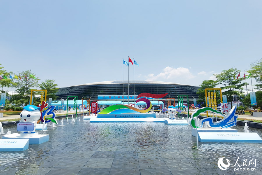 福州海峡国际会展中心场馆外,峰会元素满满。人民网 刘卿摄