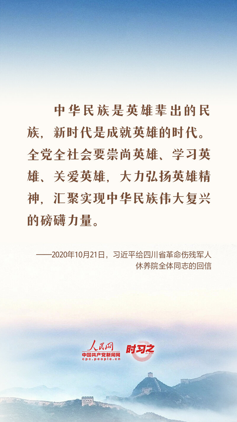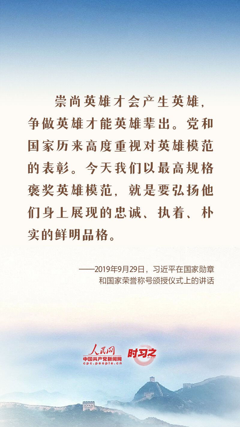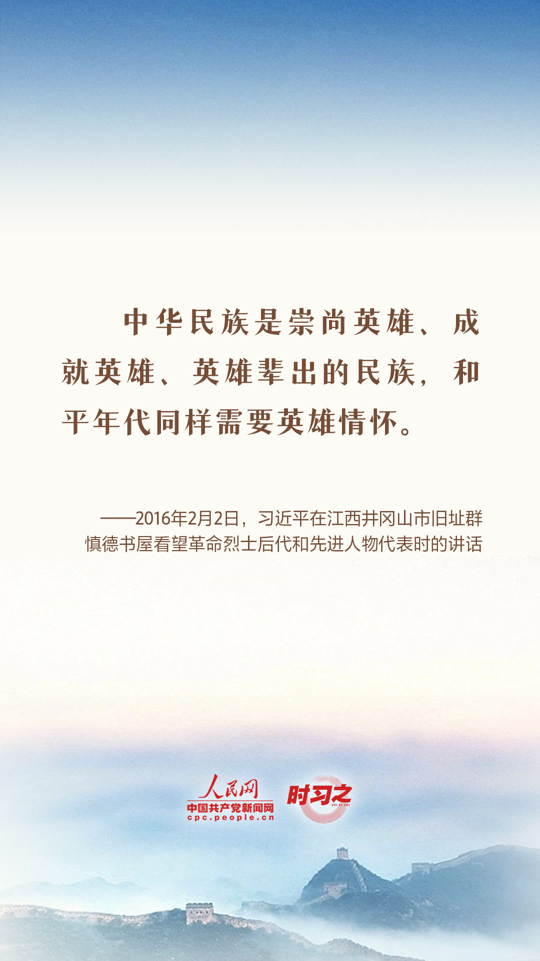 “崇尚英雄才会产生英雄,争做英雄才能英雄辈出。”在习近平心中,革命先烈和英雄人物重逾千钧。长期以来,他在多个场合表达对英雄的崇敬,推动全社会形成见贤思齐、崇尚英雄、争做先锋的良好氛围。