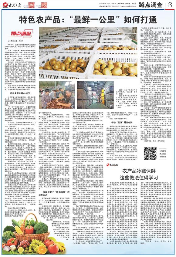 今年6月,农业农村部办公厅和财政部办公厅联合下发《关于做好2022年农产品产地冷藏保鲜设施建设工作的通知》,提出要聚焦鲜活农产品主产区、特色农产品优势区,合理集中建设产地冷藏保鲜设施。今年4月,我省印发《山东省“十四五”冷链物流发展规划》,提出以“首末一公里”冷链物流需求为导向,突出强化农产品采收预冷、初加工、保鲜储存等农产品上行、冷货消费下行功能,在田间地头、社区商圈,布局建设满足生鲜农产品品控要求和城乡居民消费需求的采供网点。