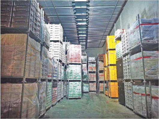 冷库内,果品摆放在货架上。(□记者于新悦报道)