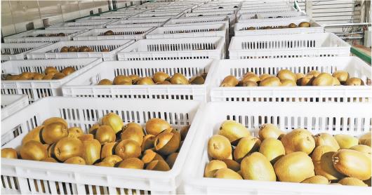 9月是猕猴桃大量上市的季节。今年,这里有了一番新景象:新采摘的猕猴桃被整齐摆放在湿润、低温的保鲜库内,自动化分选车间里分拣设备正有序地运转着。猕猴桃经过传送链,根据个头大小、果身软度等标准被自动分拣至相应位置,工作人员将分拣完成的猕猴桃进行包装处理。