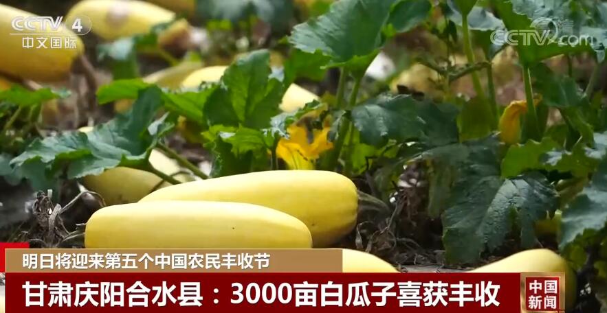 在甘肃庆阳合水县,3000亩白瓜子到了收获的季节。白瓜子是西葫芦的瓜籽,从高空俯瞰,一颗颗金灿灿的西葫芦摆满了田地, 就像一张金黄色的地毯铺设在美丽的田野上。